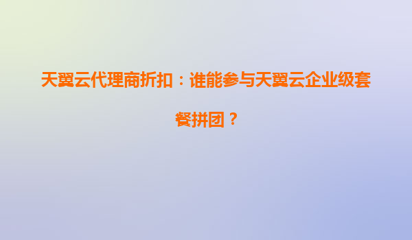 天翼云代理商折扣:誰能參與天翼云企業(yè)級套餐拼團?