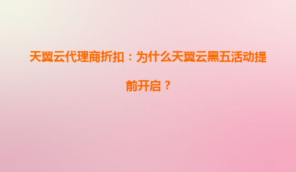 天翼云代理商折扣解讀:為何黑五活動(dòng)提前開(kāi)啟?