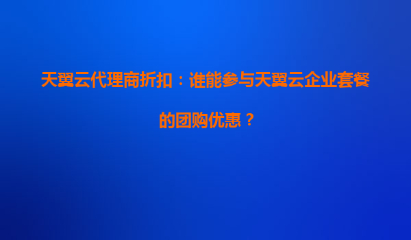 天翼云代理商折扣:誰能參與天翼云企業(yè)套餐的團購優(yōu)惠?