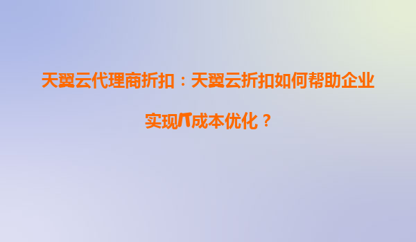 天翼云代理商折扣:天翼云折扣如何幫助企業(yè)實(shí)現(xiàn)IT成本優(yōu)化?