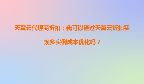 如何通過天翼云代理商折扣實(shí)現(xiàn)多實(shí)例成本優(yōu)化