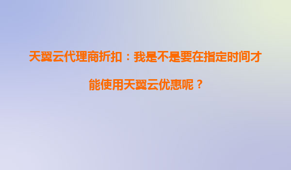 天翼云代理商折扣使用指南:優(yōu)惠是否有時間限制?