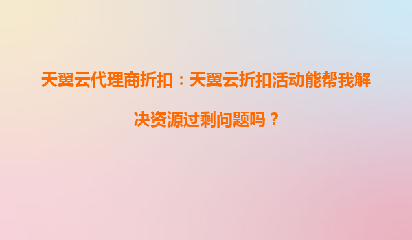天翼云代理商折扣:天翼云折扣活動(dòng)能幫我解決資源過(guò)剩問(wèn)題嗎?