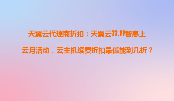 天翼云11.11智惠上云月活動(dòng):云主機(jī)續(xù)費(fèi)折扣深度解析