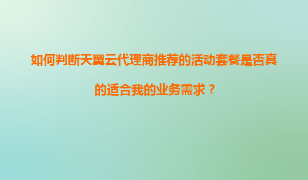 2025-11-04如何判斷天翼云代理商推薦的活動套餐是否適合我的業(yè)務(wù)需求? 引言 在當(dāng)前數(shù)字化快速發(fā)展的時代,云計算已成為企業(yè)數(shù)字化轉(zhuǎn)型的重要基礎(chǔ)設(shè)施。天翼云作為中國電信旗下的云計算品牌,憑借其強(qiáng)大的技術(shù)實力和...