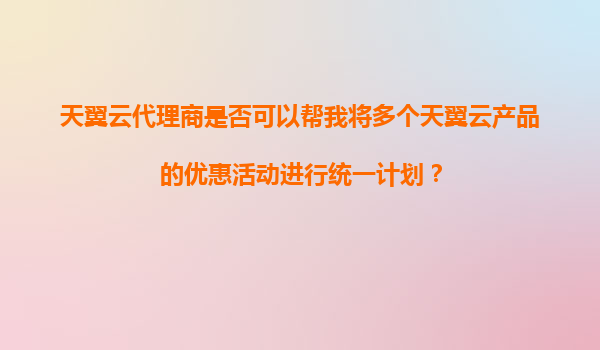 2025-11-04天翼云代理商如何幫助您統(tǒng)一規(guī)劃多產(chǎn)品優(yōu)惠方案? 一、天翼云多產(chǎn)品優(yōu)惠活動的現(xiàn)狀與挑戰(zhàn) 天翼云作為中國電信旗下的云計算服務(wù)品牌,提供從基礎(chǔ)計算、存儲到大數(shù)據(jù)、AI的豐富產(chǎn)品線。企業(yè)...