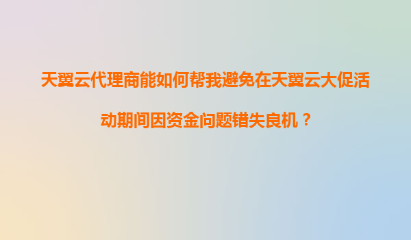 2025-11-04天翼云代理商如何幫助您在大促期間避免資金問題,抓住商機(jī)? 引言:大促活動的機(jī)遇與挑戰(zhàn) 天翼云作為中國電信旗下的云計算服務(wù)品牌,每年都會推出多次大促活動,為企業(yè)...