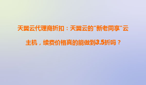 2025-10-31天翼云代理商折扣:天翼云“新老同享”云主機(jī),續(xù)費(fèi)價格真的能做到3.5折嗎? 引言 隨著云計算市場的快速發(fā)展,越來越多的企業(yè)開始關(guān)注云服務(wù)的性價比。天翼云作為中國電信旗下的云計算品牌,憑借其強(qiáng)...