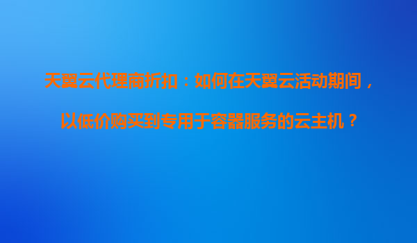 2025-11-01天翼云代理商折扣:如何在天翼云活動期間,以低價購買專用于容器服務(wù)的云主機(jī)? 一、天翼云容器服務(wù)與云主機(jī)的核心價值 天翼云作為中國電信旗下云計算品牌,為容器化應(yīng)用提供高性能、彈性的云主機(jī)服務(wù)。...