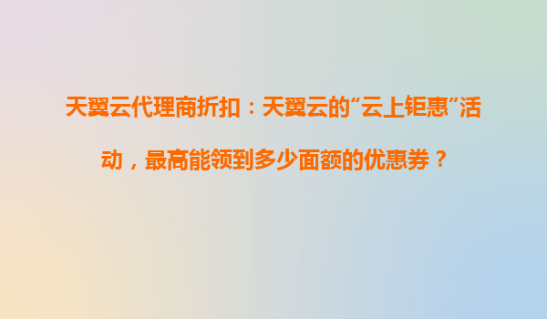 2025-10-31天翼云代理商折扣解析:"云上鉅惠"活動優(yōu)惠券面額及合作優(yōu)勢 一、天翼云"云上鉅惠"活動核心福利 在天翼云近期推出的"云上鉅惠"促銷活動中,用戶最高可領(lǐng)取5000元面額的云服務(wù)優(yōu)惠券。該活動針對新老用...