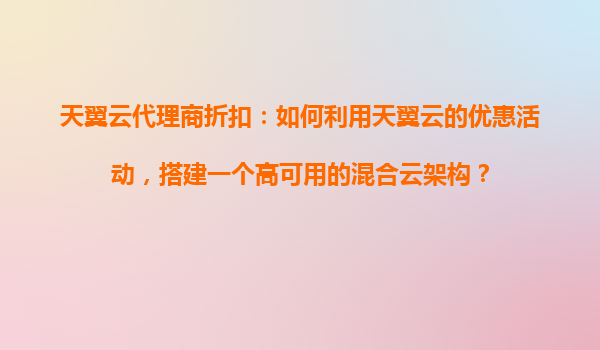 2025-10-31如何利用天翼云代理商折扣搭建高可用混合云架構(gòu) 一、混合云架構(gòu)的價值與天翼云優(yōu)勢 混合云架構(gòu)結(jié)合了公有云的靈活性和私有云的安全性,已成為企業(yè)數(shù)字化轉(zhuǎn)型的主流選擇。天翼云作為中國電信旗下云計算...