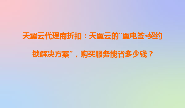 2025-11-01天翼云代理商折扣:翼電簽-契約鎖解決方案為您節(jié)省成本 一、天翼云代理商折扣概述 天翼云作為中國電信旗下的云計算服務(wù)品牌,為企業(yè)用戶提供全方位的云服務(wù)解決方案。通過天翼云代理商購買云服務(wù),...