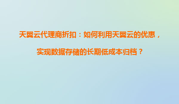 2025-10-31天翼云代理商折扣:實現(xiàn)長期低成本數(shù)據(jù)歸檔的智能選擇 為什么選擇天翼云進行數(shù)據(jù)歸檔 天翼云作為中國電信旗下的云計算品牌,憑借其強大的基礎(chǔ)設(shè)施和穩(wěn)定的服務,成為企業(yè)數(shù)據(jù)長期歸檔的理...