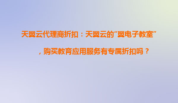 2025-10-31天翼云代理商折扣:揭秘“翼電子教室”教育應用服務的專屬優(yōu)惠 引言 在當前數(shù)字化教育浪潮下,云計算技術(shù)成為教育信息化轉(zhuǎn)型的核心驅(qū)動力。作為中國電信旗下的云計算品牌,天翼云憑借強大的技術(shù)實...