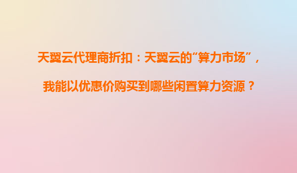 2025-10-31天翼云代理商折扣:如何通過“算力市場”優(yōu)惠獲取閑置算力資源? 隨著數(shù)字化轉(zhuǎn)型的加速,企業(yè)和個人對云計算資源的需求日益增長。面對算力需求波動大、資源利用率不均衡的問題,天翼云推出的“算力市場”為企...