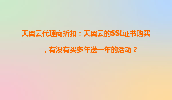 2025-10-31天翼云代理商折扣全解析:SSL證書多年購買贈送一年活動及天翼云核心優(yōu)勢 一、天翼云SSL證書優(yōu)惠活動現(xiàn)狀 針對用戶關(guān)心的"天翼云SSL證書是否有買多年送一年活動"問題,目前官方公布的促銷政策顯示: 標準套餐:通...