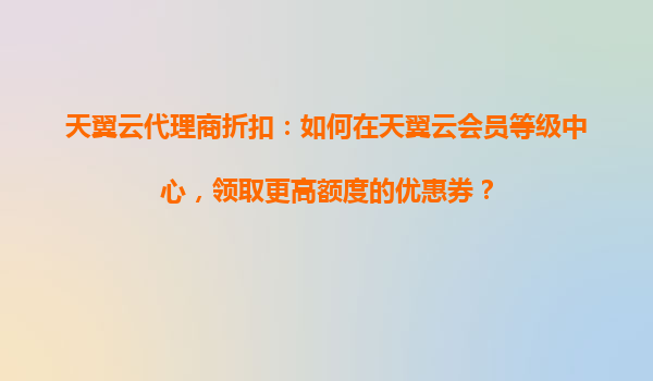 2025-10-30天翼云代理商折扣:如何在天翼云會(huì)員等級(jí)中心領(lǐng)取更高額度優(yōu)惠券? 一、天翼云會(huì)員等級(jí)與優(yōu)惠券額度關(guān)系解析 天翼云會(huì)員等級(jí)體系分為白銀會(huì)員、黃金會(huì)員、白金會(huì)員和鉆石會(huì)員四個(gè)級(jí)別,會(huì)員等級(jí)越高,可領(lǐng)取的優(yōu)惠...