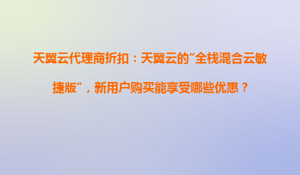 2025-10-30天翼云代理商折扣全解析:全?;旌显泼艚莅嫘掠脩?hù)專(zhuān)享優(yōu)惠 作為中國(guó)電信旗下的云計(jì)算服務(wù)品牌,天翼云憑借其強(qiáng)大的基礎(chǔ)設(shè)施和央企背景,已成為企業(yè)數(shù)字化轉(zhuǎn)型的重要選擇。針對(duì)新用戶(hù),天翼云特別推出了"全?;旌显?..
