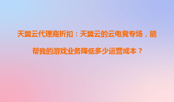 2025-10-30天翼云代理商折扣:云電競(jìng)專(zhuān)場(chǎng)如何助力游戲業(yè)務(wù)降本增效 一、云電競(jìng)專(zhuān)場(chǎng)的核心價(jià)值:聚焦游戲行業(yè)需求 天翼云代理商推出的"云電競(jìng)專(zhuān)場(chǎng)"活動(dòng),針對(duì)游戲行業(yè)提供專(zhuān)屬云計(jì)算資源折扣方案,通過(guò)以下方式精準(zhǔn)匹...