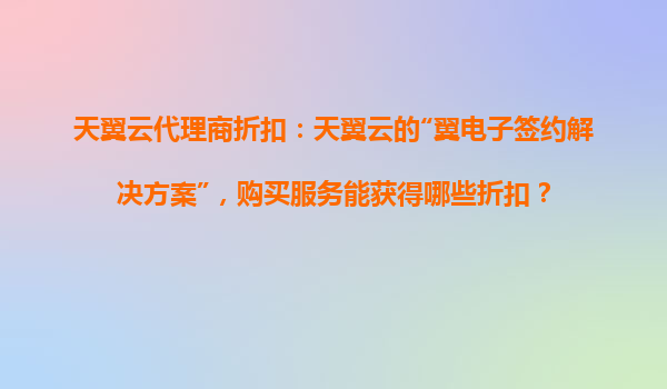 2025-10-30天翼云代理商折扣:揭秘“翼電子簽約解決方案”的優(yōu)惠與核心優(yōu)勢(shì) 一、天翼云“翼電子簽約解決方案”代理商折扣政策 作為天翼云代理商,客戶(hù)通過(guò)代理渠道購(gòu)買(mǎi)“...