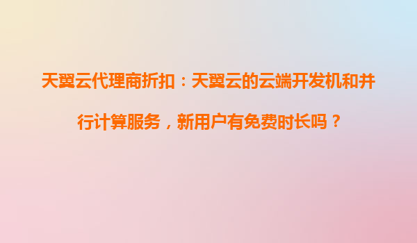 2025-10-29天翼云代理商折扣政策及新用戶免費(fèi)時長詳解 一、天翼云核心服務(wù)簡介 作為中國電信旗下的云計算品牌,天翼云提供包括云端開發(fā)機(jī)和并行計算在內(nèi)的全方位云服務(wù): 云端開發(fā)機(jī):支持遠(yuǎn)程開發(fā)的云...