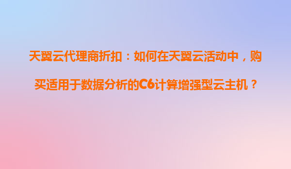 2025-10-29天翼云代理商折扣:如何高效購買適用于數(shù)據(jù)分析的C6計算增強(qiáng)型云主機(jī)? 一、天翼云的優(yōu)勢與C6云主機(jī)適用場景 作為中國電信旗下的云計算服務(wù)品牌,天翼云憑借以下核心優(yōu)勢為數(shù)據(jù)分析場景提供可靠支持: 運(yùn)營商級...