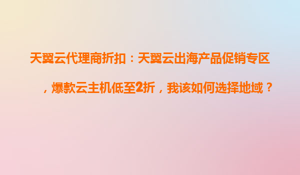 2025-10-28天翼云出海產(chǎn)品促銷專區(qū):爆款云主機(jī)低至2折,如何科學(xué)選擇地域? 一、天翼云的突出優(yōu)勢(shì) 作為中國(guó)電信旗下云計(jì)算品牌,天翼云憑借央企背景和全球化布局,在出海業(yè)務(wù)領(lǐng)域具有獨(dú)特競(jìng)爭(zhēng)優(yōu)勢(shì): ...