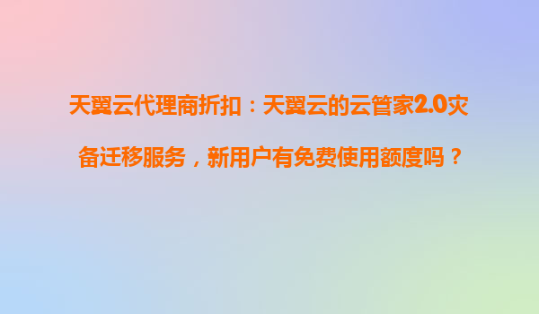 2025-10-29天翼云代理商折扣:云管家2.0災(zāi)備遷移服務(wù)新用戶免費(fèi)額度解析 一、天翼云與云管家2.0的災(zāi)備遷移服務(wù) 隨著數(shù)字化轉(zhuǎn)型的加速,企業(yè)對(duì)數(shù)據(jù)安全和業(yè)務(wù)連續(xù)性的需求日益增長(zhǎng)。天翼云作為中國(guó)電信旗下的...