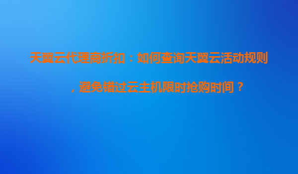 2025-10-28天翼云11.11智惠上云月活動(dòng):云主機(jī)續(xù)費(fèi)折扣深度解析 活動(dòng)亮點(diǎn):云主機(jī)續(xù)費(fèi)折扣低至5折 在今年的天翼云11.11智惠上云月活動(dòng)中,云主機(jī)續(xù)費(fèi)折扣力度空前,通過代理商渠道最低可享受5折優(yōu)惠!此舉不僅大...