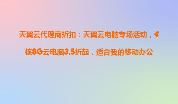 2025-10-27天翼云代理商折扣:天翼云電腦專場活動解析 一、活動核心內(nèi)容:4核8G云電腦3.5折起 本次天翼云代理商推出的專場活動主打高性價比云電腦服務(wù),針對4核8G配置的云電腦提供最低3.5折的優(yōu)惠折扣。這一...