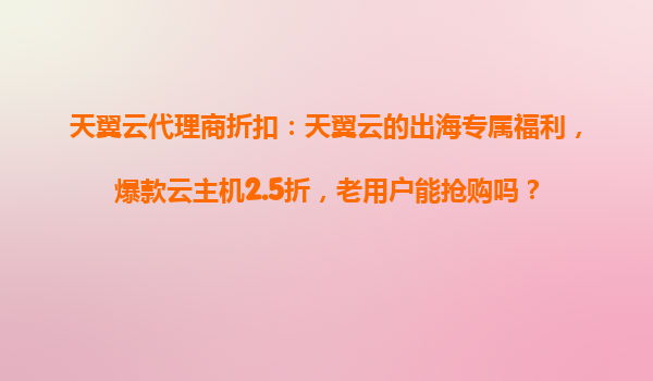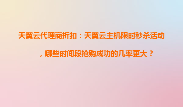 2025-10-27天翼云代理商折扣:天翼云主機限時秒殺活動搶購攻略 抓住這幾個時間段搶購成功幾率翻倍 在天翼云主機限時秒殺活動中,搶購成功率與時間選擇密切相關(guān)。根據(jù)天翼云歷年活動數(shù)據(jù)分析,以下幾個時間段是...