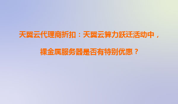 2025-10-25天翼云算力躍遷活動:裸金屬服務(wù)器特別優(yōu)惠解析 活動背景與裸金屬服務(wù)器定位 天翼云推出的"算力躍遷"活動旨在為企業(yè)和開發(fā)者提供高性能、高性價(jià)比的云計(jì)算資源。其中,裸金屬服務(wù)器作為兼...