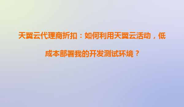 2025-10-23天翼云代理商折扣:如何利用天翼云活動,低成本部署開發(fā)測試環(huán)境? 一、開發(fā)測試環(huán)境部署的痛點與天翼云的優(yōu)勢 對于企業(yè)開發(fā)團(tuán)隊或個人開發(fā)者而言,搭建開發(fā)測試環(huán)境常面臨以下問題:硬...