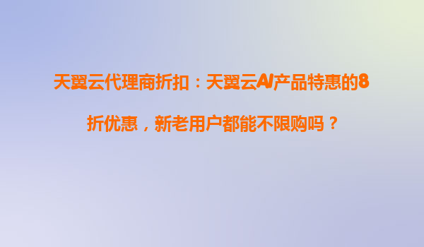2025-10-24天翼云AI產(chǎn)品限時8折特惠新老用戶尊享不限購專屬福利 在數(shù)字化浪潮席卷全球的今天,云計算已成為企業(yè)轉(zhuǎn)型的核心引擎。作為中國領(lǐng)先的云服務(wù)提供商,天翼云憑借其強(qiáng)大的技術(shù)實力和豐富的行業(yè)經(jīng)驗,持續(xù)為企業(yè)和...