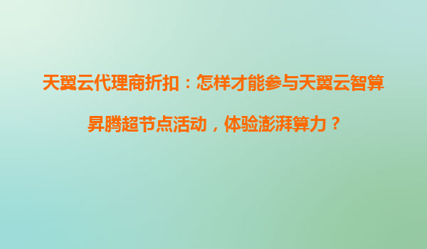 2025-10-23天翼云代理商折扣:體驗(yàn)智算昇騰超節(jié)點(diǎn)澎湃算力的全攻略 一、天翼云核心優(yōu)勢(shì):為何選擇智算昇騰超節(jié)點(diǎn)? 天翼云作為中國電信旗下云計(jì)算品牌,依托央企級(jí)資源與全國分布式數(shù)據(jù)中心布局,在智算領(lǐng)域具備三大核...
