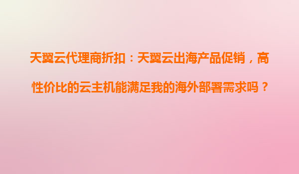 2025-10-23天翼云出海產(chǎn)品促銷:高性價(jià)比云主機(jī)助力企業(yè)海外部署 隨著全球化進(jìn)程加速,越來越多企業(yè)將業(yè)務(wù)拓展至海外市場(chǎng)。面對(duì)海外復(fù)雜的IT基礎(chǔ)設(shè)施環(huán)境,如何選擇穩(wěn)定可靠的云計(jì)算服務(wù)成為關(guān)鍵。天翼云作為中國電信旗下云服...