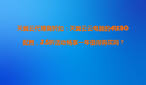 2025-10-23天翼云代理商折扣:天翼云云電腦4核8G配置3.5折活動(dòng)暢享一年值得購買嗎? 一、引言:云計(jì)算時(shí)代的企業(yè)選擇 在數(shù)字化轉(zhuǎn)型浪潮中,企業(yè)上云已成為必然趨勢(shì)。天翼云作為中國電信旗下云計(jì)算品牌,近期推出的"4...