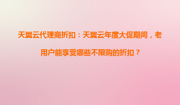 2025-10-22天翼云年度大促:老用戶不限購(gòu)折扣及代理商優(yōu)勢(shì)解析 一、天翼云年度大促銷活動(dòng)概覽 每年年底,天翼云都會(huì)推出力度空前的年度大促活動(dòng),針對(duì)新老用戶提供各種優(yōu)惠政策。對(duì)于老用戶而言,本次大促特別推...