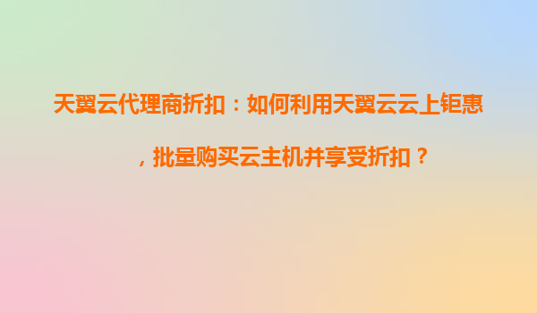 2025-10-23天翼云代理商折扣:如何利用云上鉅惠批量購(gòu)買云主機(jī) 一、天翼云代理商折扣政策解析 天翼云為代理商提供階梯式折扣政策,采購(gòu)量越大,享受的折扣力度越高。通過(guò)成為天翼云認(rèn)證代理商,企業(yè)可獲專屬客戶經(jīng)理支持...