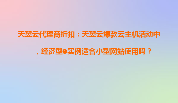 2025-10-23天翼云代理商折扣:經(jīng)濟(jì)型e實(shí)例是否適合小型網(wǎng)站使用? 一、天翼云經(jīng)濟(jì)型e實(shí)例的核心優(yōu)勢(shì) 在天翼云爆款云主機(jī)活動(dòng)中,經(jīng)濟(jì)型e實(shí)例憑借以下特點(diǎn)成為小型網(wǎng)站的優(yōu)選: 高性...