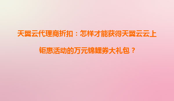 2025-10-21天翼云代理商折扣:解鎖萬元錦鯉券大禮包的終極攻略 一、天翼云“云上鉅惠”活動(dòng)背景 隨著數(shù)字化轉(zhuǎn)型加速,天翼云作為中國電信旗下云計(jì)算品牌,憑借央企背景和技術(shù)實(shí)力,持續(xù)推出普惠企業(yè)的優(yōu)惠活動(dòng)。"云上...