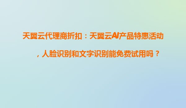 2025-10-22天翼云AI產(chǎn)品特惠活動(dòng)解析:人臉識(shí)別與文字識(shí)別免費(fèi)試用指南 一、天翼云代理商折扣活動(dòng)概述 天翼云作為中國電信旗下云計(jì)算品牌,憑借央企背景與強(qiáng)大的基礎(chǔ)設(shè)施能力,持續(xù)為代理商...