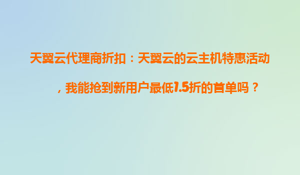 2025-10-21天翼云代理商折扣揭秘:如何搶到1.5折超值云主機(jī)? 一、天翼云新用戶專享1.5折首單解析 近期天翼云通過代理商渠道推出的首單1.5折特惠活動(dòng)引發(fā)廣泛關(guān)注,該活動(dòng)主要面向企業(yè)級(jí)新用戶,需通過官方認(rèn)證代理商參與...