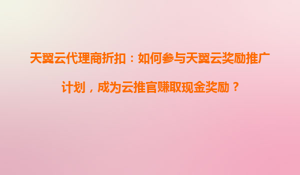 2025-10-22天翼云代理商折扣:如何參與天翼云獎(jiǎng)勵(lì)推廣計(jì)劃,成為云推官賺取現(xiàn)金獎(jiǎng)勵(lì)? 一、天翼云與代理商的優(yōu)勢解讀 天翼云作為中國電信旗下云計(jì)算品牌,憑借央企背景、全國覆蓋的數(shù)據(jù)中心網(wǎng)絡(luò)和...