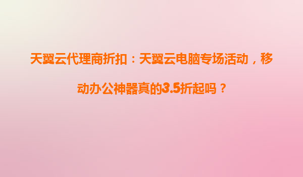 2025-10-22天翼云代理商折扣解析:天翼云電腦專場活動(dòng),移動(dòng)辦公神器真的3.5折起? 一、天翼云電腦專場活動(dòng)解析:3.5折起是否真實(shí)? 近期,天翼云推出“天翼云電腦專場活動(dòng)”,主打“移動(dòng)辦公神器3.5折起”的優(yōu)惠口號(hào)...