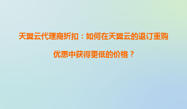 2025-10-20天翼云代理商折扣:如何在天翼云退訂重購優(yōu)惠中獲得更低價(jià)格? 一、天翼云的核心優(yōu)勢(shì) 在探討如何通過退訂重購策略降低成本前,首先需了解天翼云作為中國電信旗...