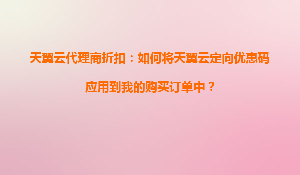 2025-10-20天翼云代理商折扣:如何輕松將定向優(yōu)惠碼應(yīng)用到購買訂單? 為什么選擇天翼云? 天翼云作為中國電信旗下的云計(jì)算服務(wù)品牌,依托強(qiáng)大的基礎(chǔ)設(shè)施和網(wǎng)絡(luò)資源,為用戶提供穩(wěn)定、安全、高效的云...