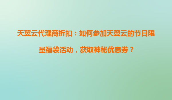2025-10-20天翼云代理商折扣:如何參加天翼云的節(jié)日限量福袋活動,獲取神秘優(yōu)惠券? 引言 隨著云計算技術(shù)的快速發(fā)展,越來越多的企業(yè)和個人選擇云服務(wù)來提升業(yè)務(wù)效率和數(shù)據(jù)安全。天翼云作為中國電信旗下的云計算品牌...