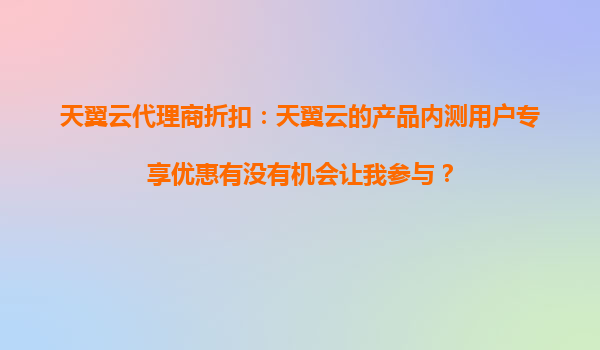 4008-020-360 天翼云代理商折扣:解鎖內(nèi)測用戶專享優(yōu)惠的機遇與價值 一、天翼云的內(nèi)測用戶專享優(yōu)惠機制 天翼云作為中國電信旗下云計算服務(wù)品牌,長期通過內(nèi)測用戶計劃優(yōu)化產(chǎn)品體驗。內(nèi)測用戶不僅能提...