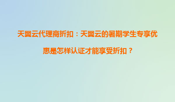 2025-10-20天翼云代理商折扣:暑期學(xué)生專享優(yōu)惠認(rèn)證指南與優(yōu)勢解析 一、天翼云暑期學(xué)生專享優(yōu)惠簡介 天翼云作為中國電信旗下云計算服務(wù)品牌,每年暑期面向在校學(xué)生推出專屬優(yōu)惠活動,提供云...